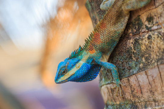 Calotes Mystaceus Blue Crested Lizard Stock Photo - Download Image Now ...