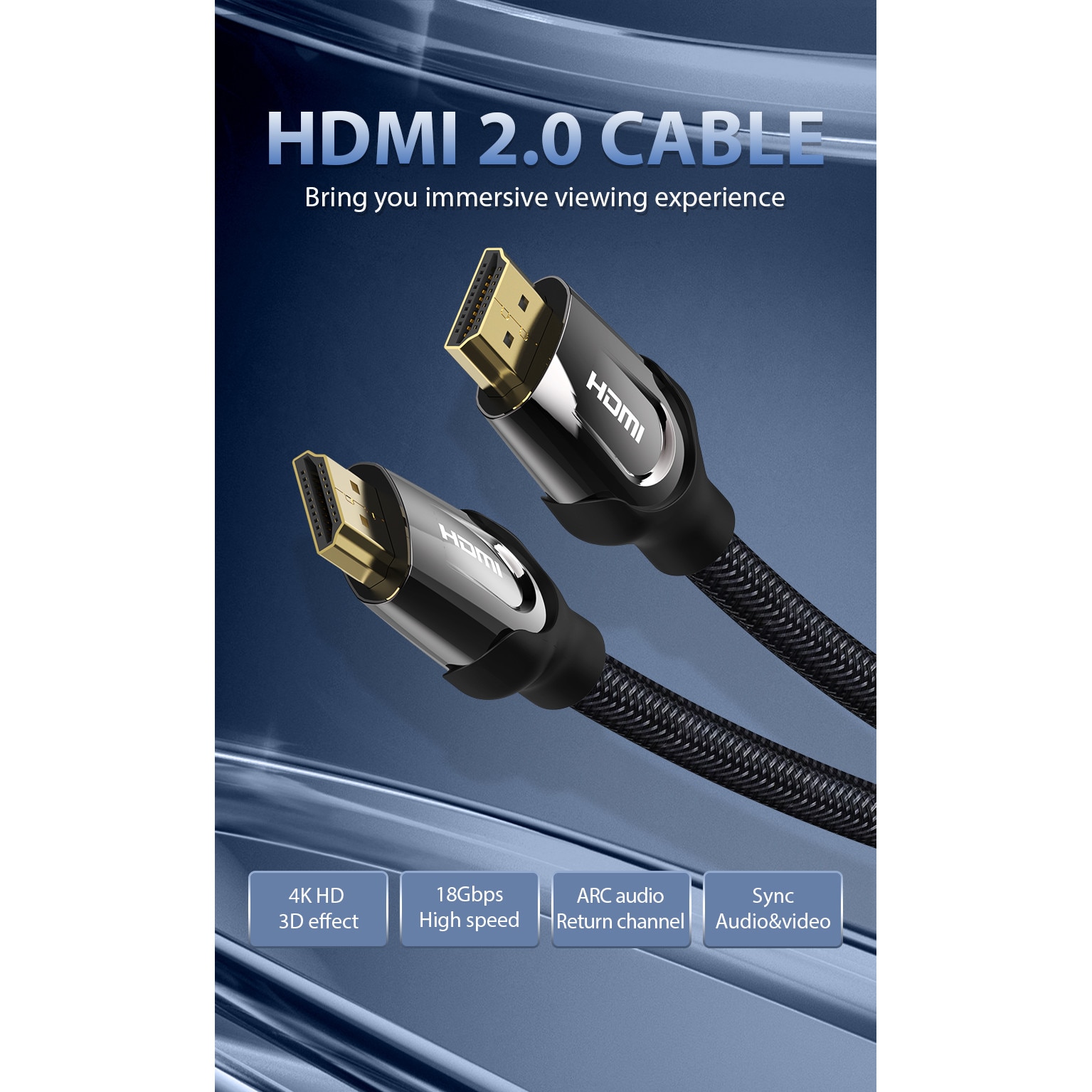 Cablu profesional HDMI 2.0, tesatura din nylon, negru metalizat, tata ...