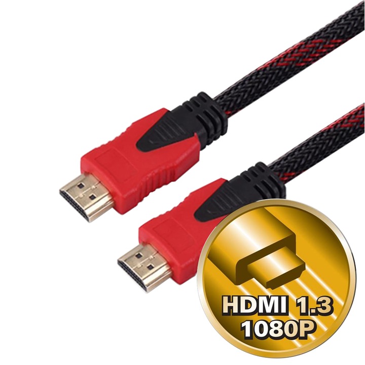 Cablu HDMI, E-kam, 1080P, Negru/Rosu - eMAG.ro