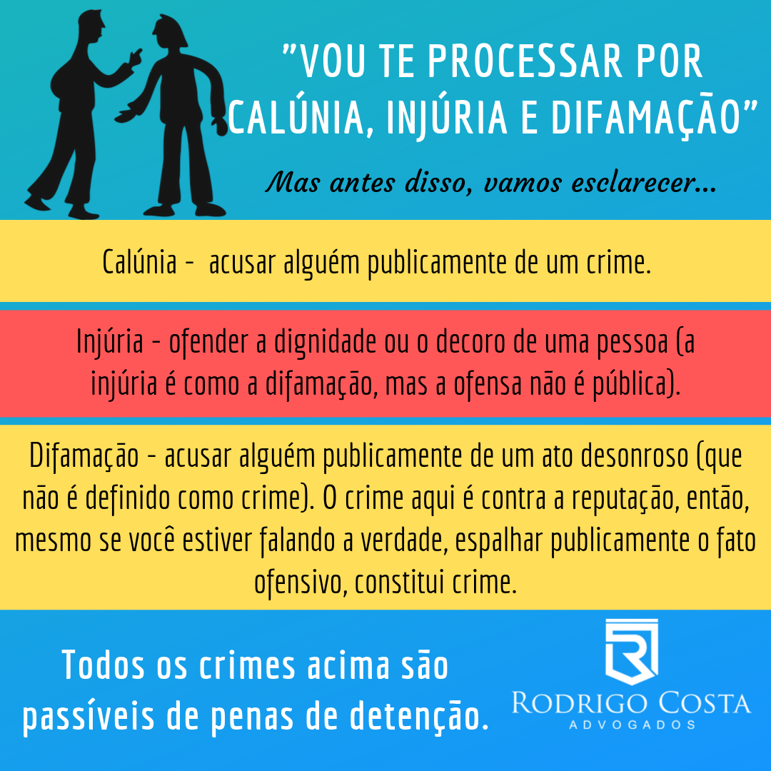 INJÚRIA, DIFAMAÇÃO E CALÚNIA: Aprenda quais são os crimes contra a ...
