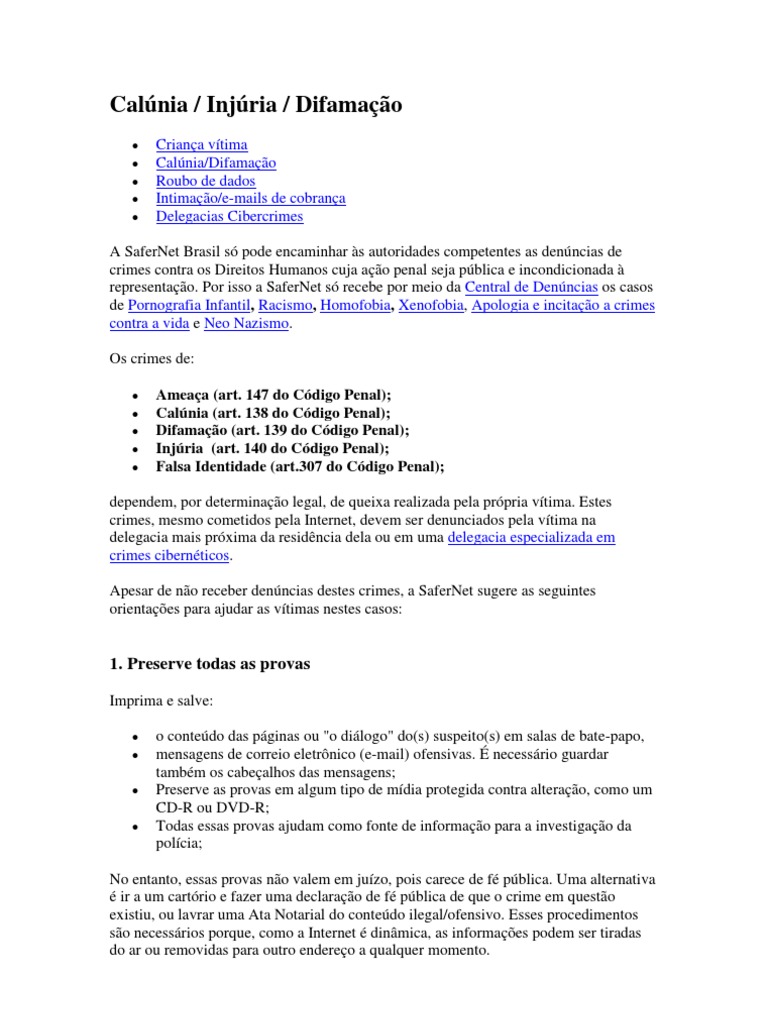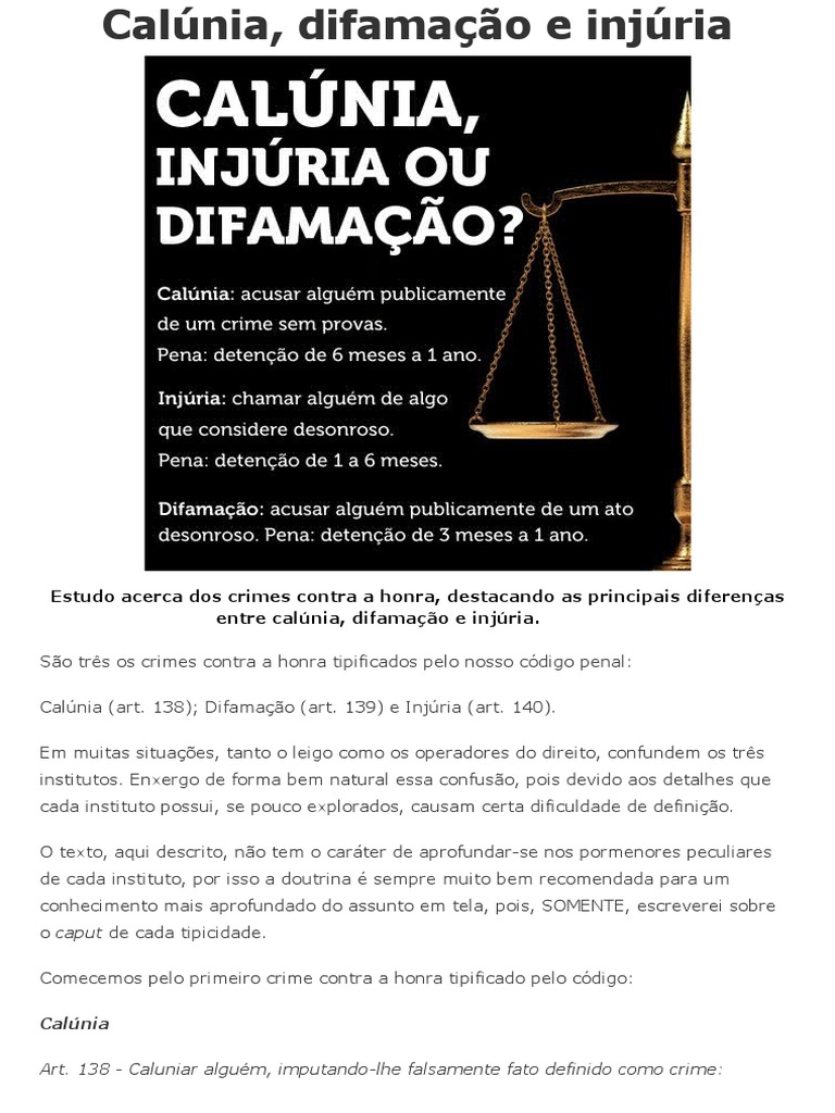 Calúnia, Difamação e Injúria | PDF | Difamação | Crime e violência