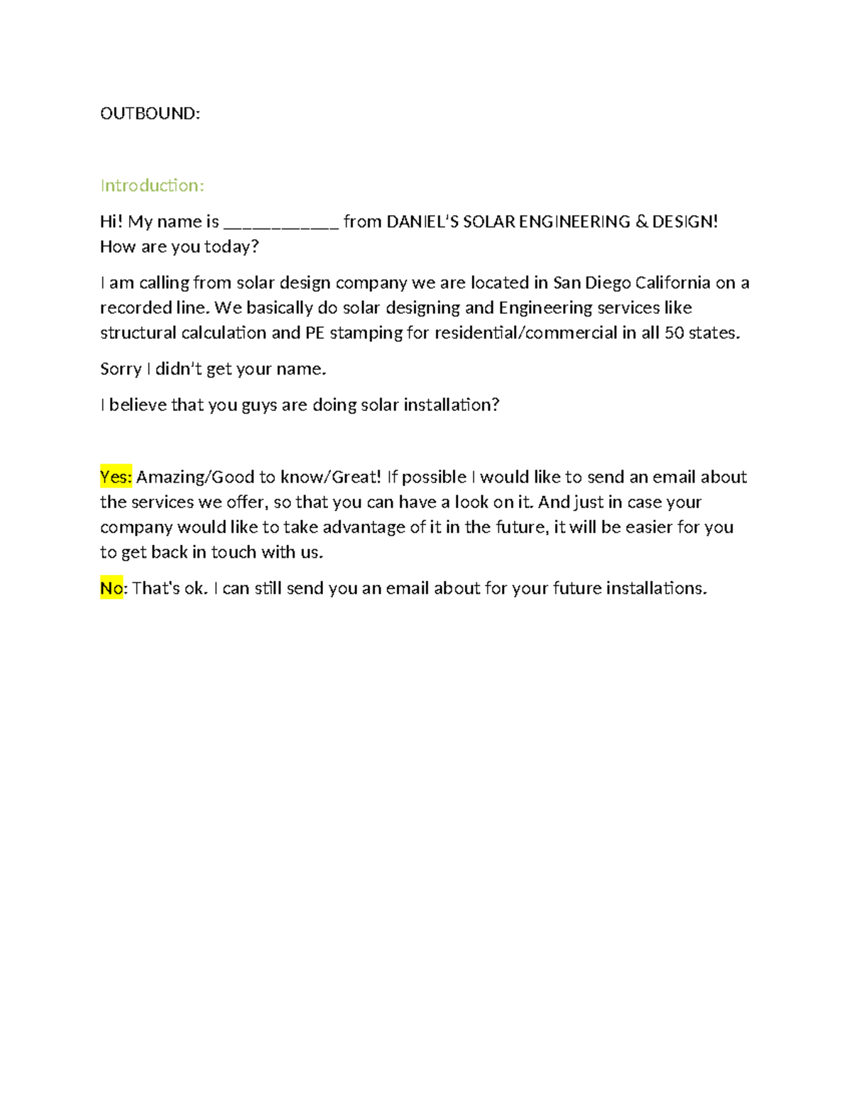 Sample script for applicant 2023 - OUTBOUND: Introduction: Hi! My name ...