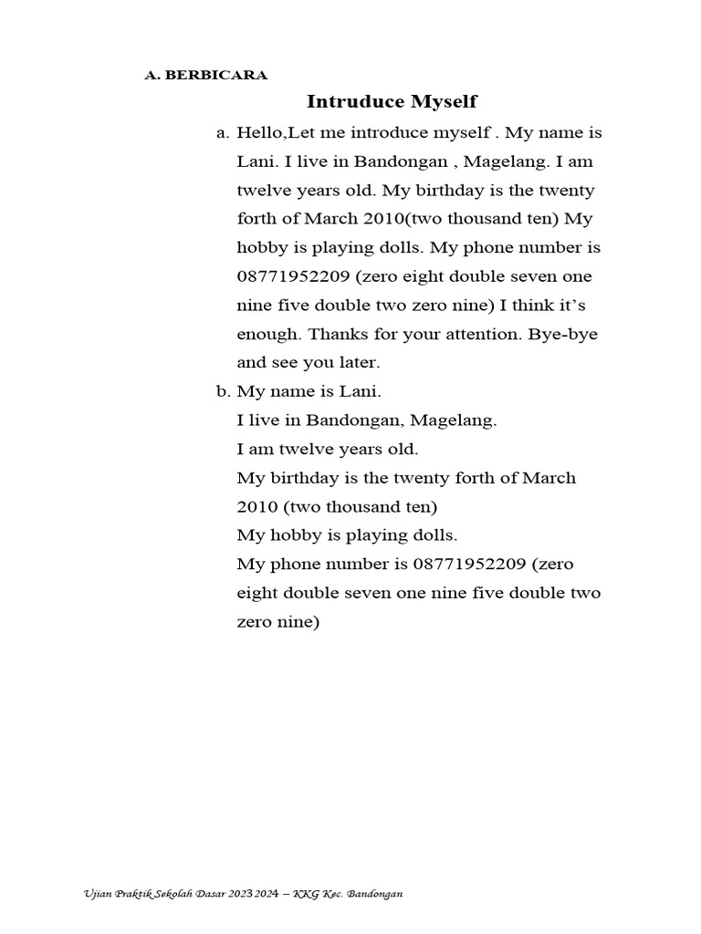 Contoh Self Introduction Script | PDF