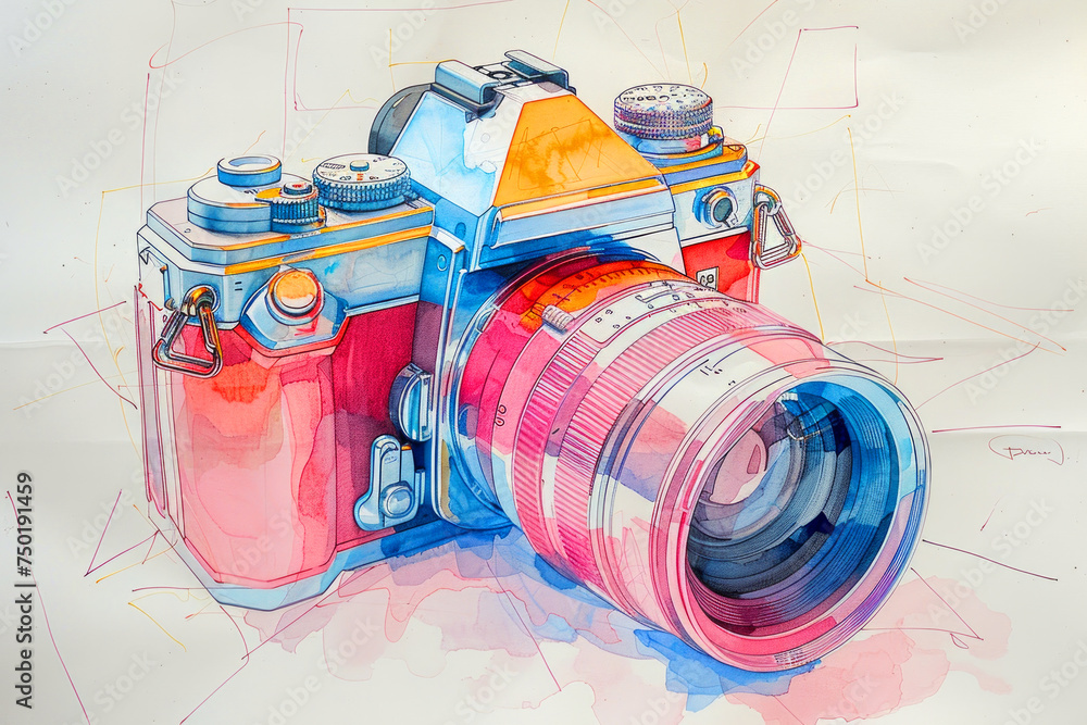 How to Draw Camera: Detailed Guide to Drawing Colorful Illustration ...
