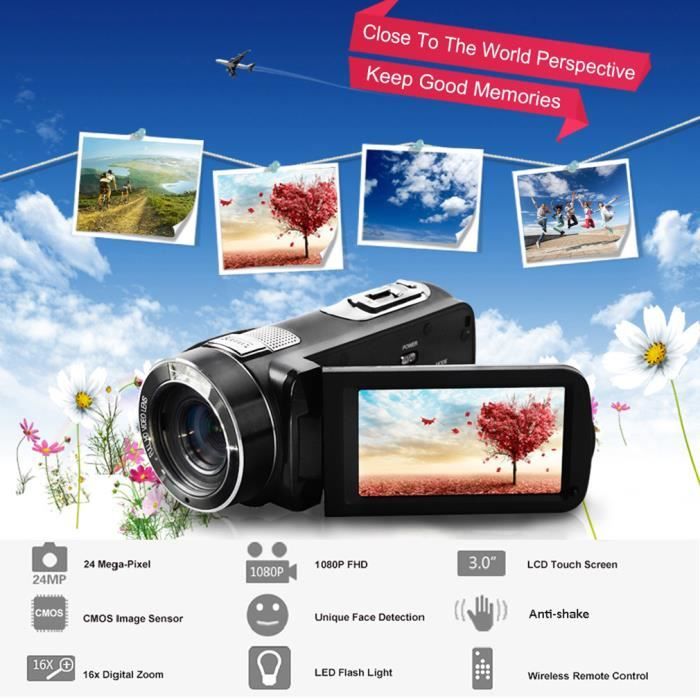 HDV vidéo caméra digital 3.0 inch 24MP DV HDV Full HD 1080P 16X Zoom ...