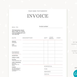 Photographer Invoice Template - Editable Canva Design - Photography ...