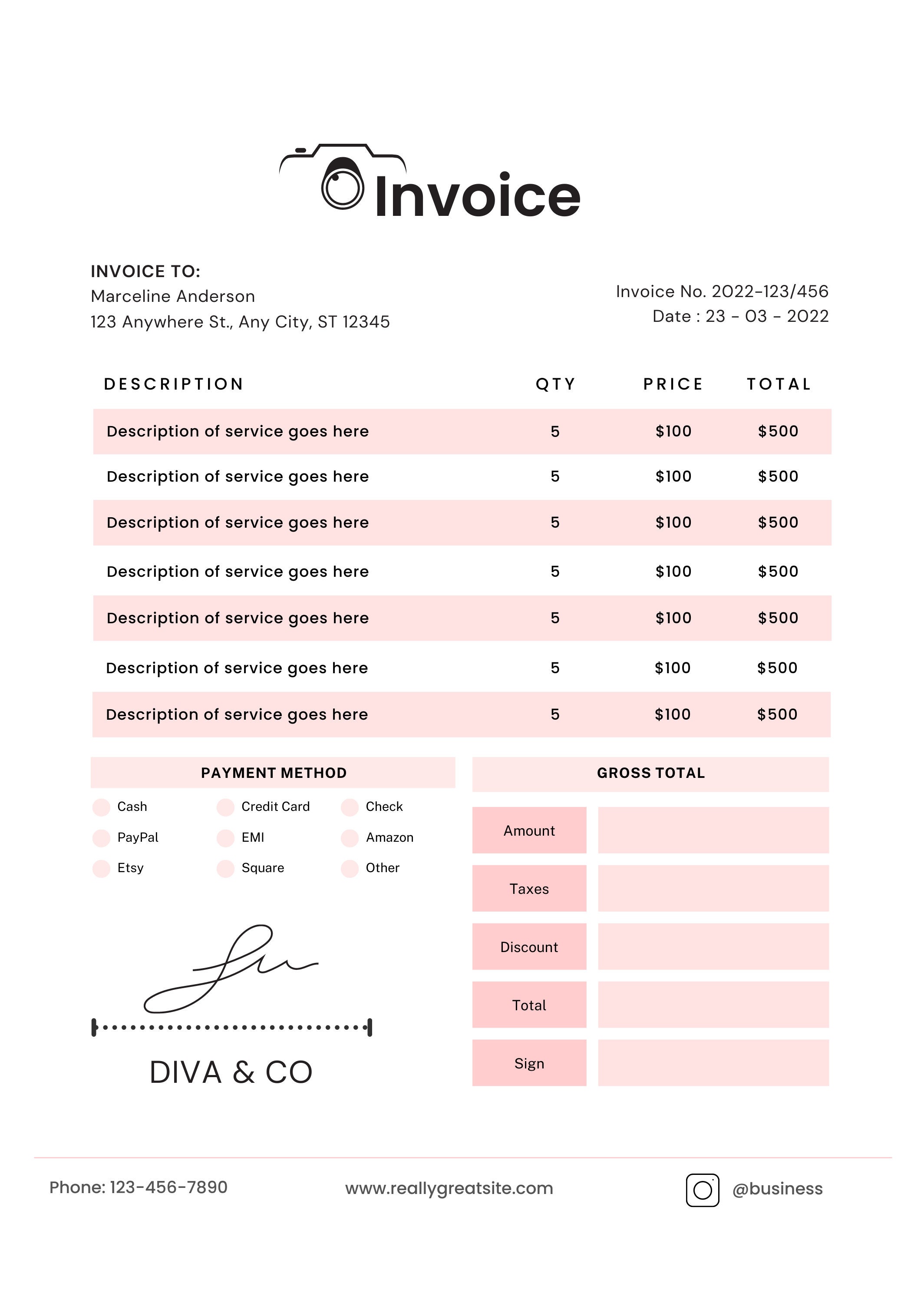 Photography Service Invoice Template | Invoice Maker