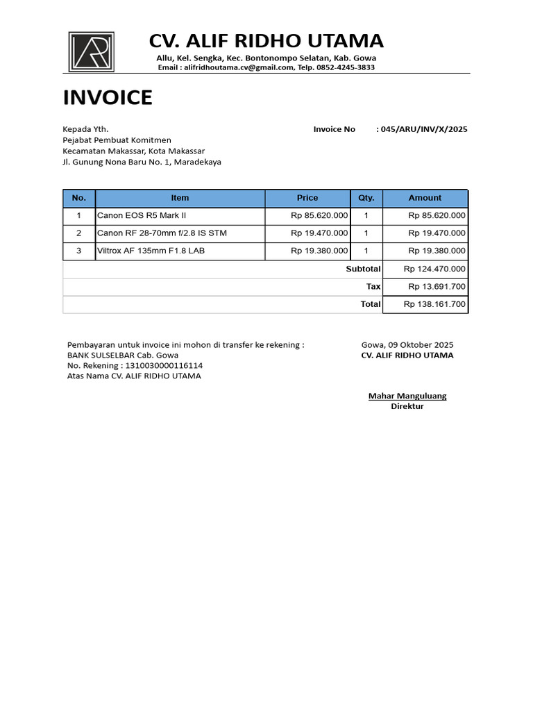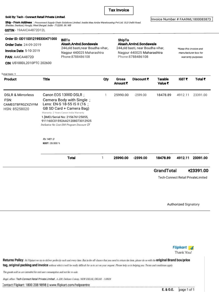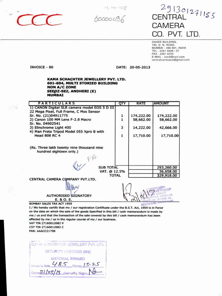 Invoice for Camera Equipment Purchase | PDF | Digital Single Lens ...