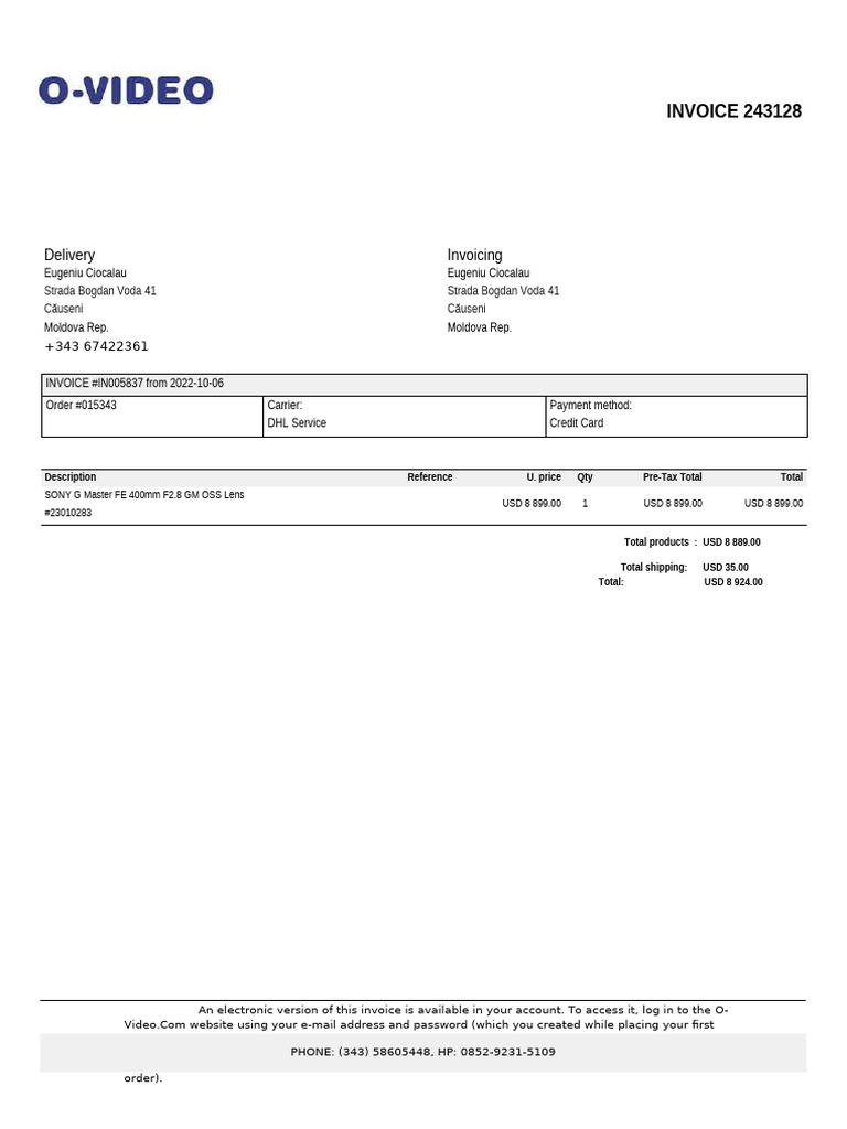 Invoice for SONY G Master Lens Purchase | PDF