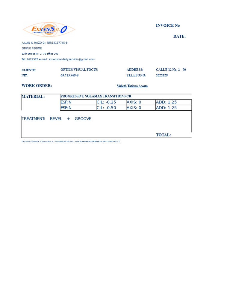 Eye Glasses Invoice PDF | PDF