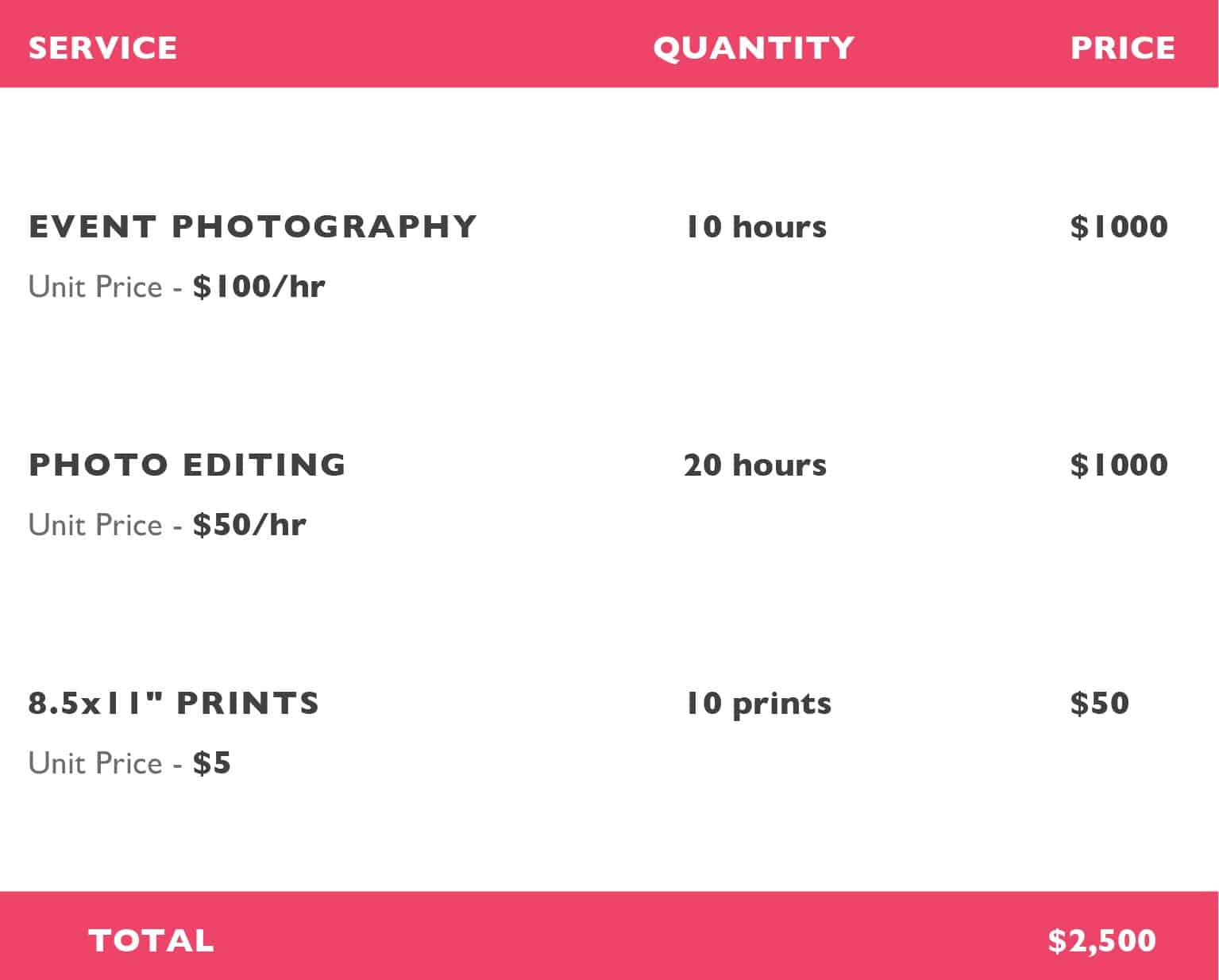 Photography Invoice