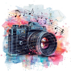 12x Classic Camera Music Notes Clipart, Musical Clipart, Printable ...