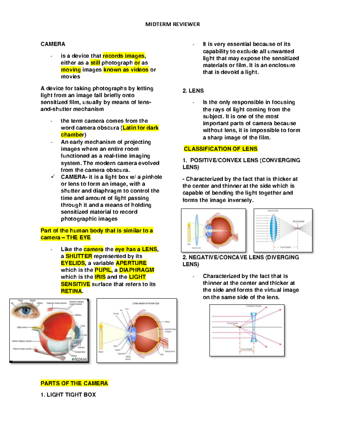 midterm notes on photography - CAMERA is a device that records images ...