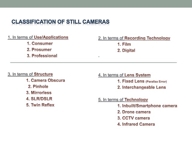 Camera and types | PPTX | Cameras and Camcorders | Consumer Electronics