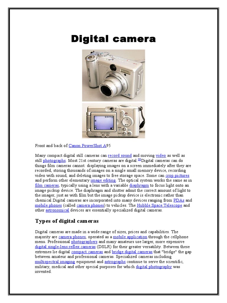 Digital Camera: Types of Digital Cameras | PDF | Digital Camera ...