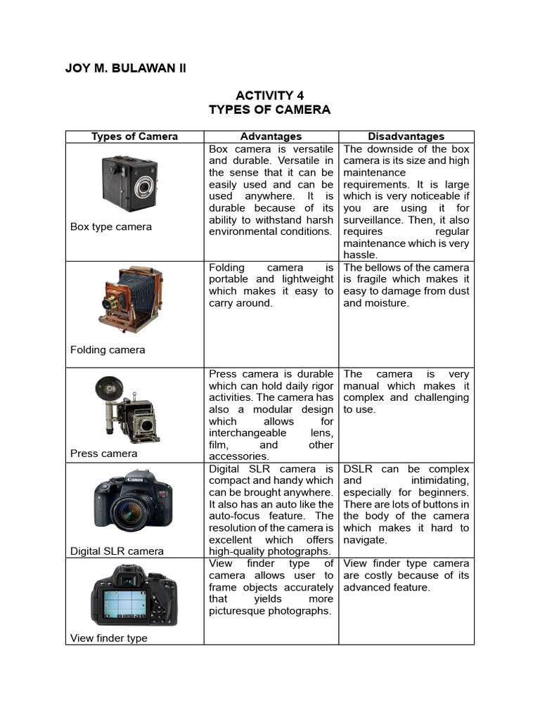SOLUTION: Types of cameras - Studypool