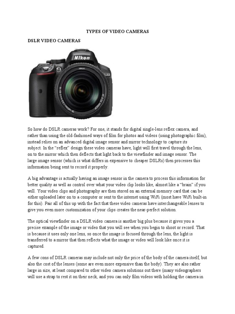 Types of Video Cameras Vid 1 | PDF | Digital Single Lens Reflex Camera ...