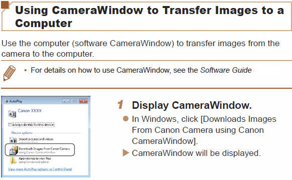 Using CameraWindow to Transfer Images to a Computer