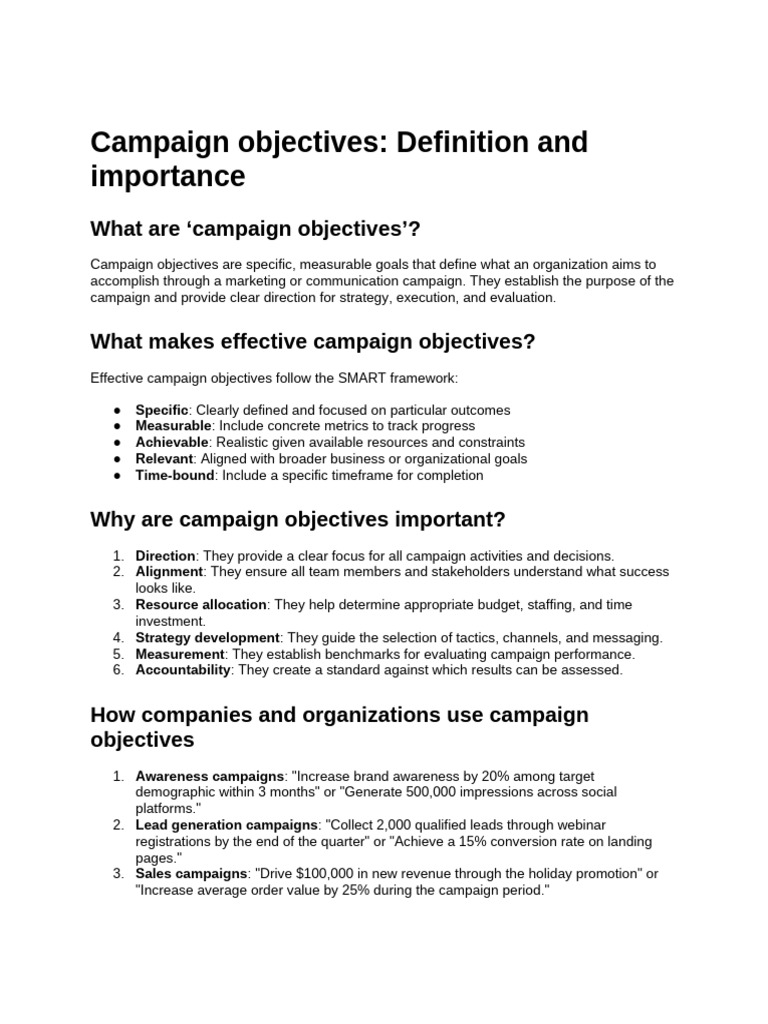 Campaign Objectives - Definition and Importance | PDF | Goal ...