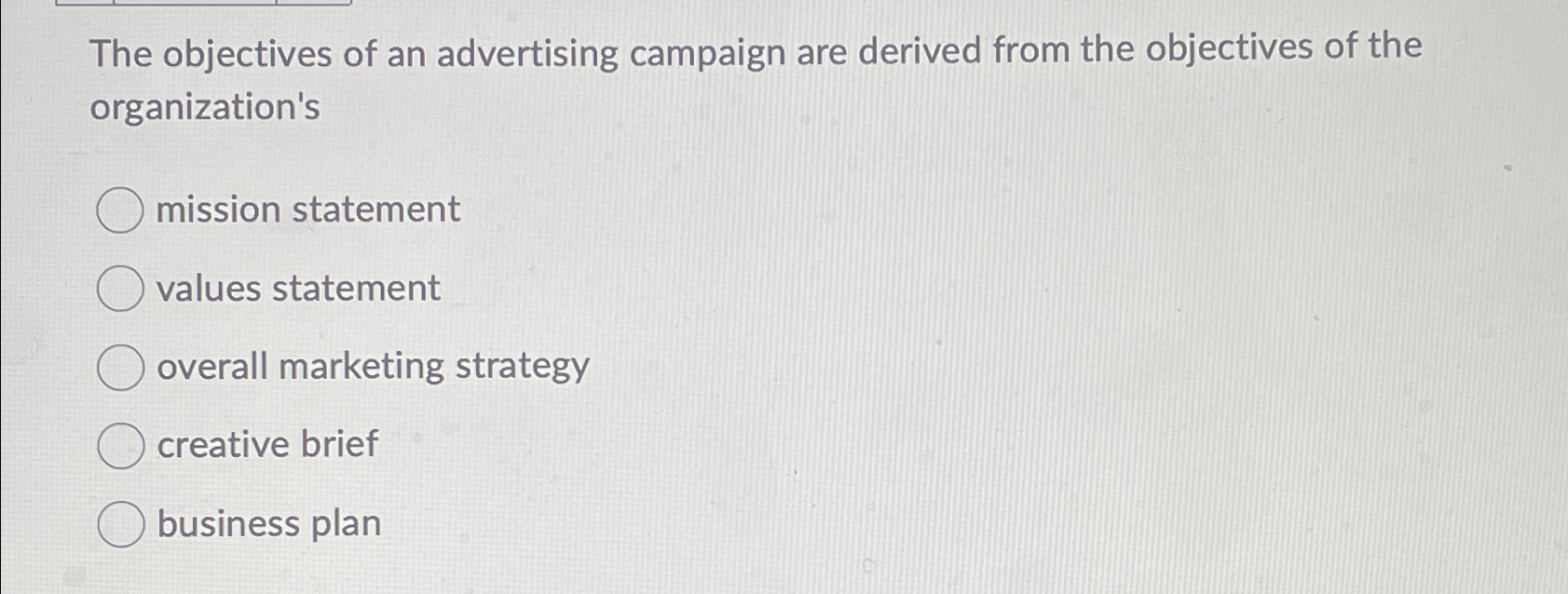 Solved The objectives of an advertising campaign are derived | Chegg.com