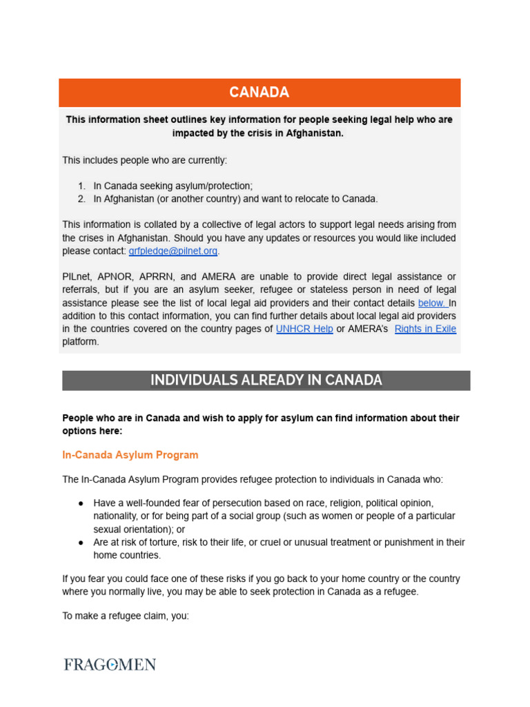 CANADA Legal Information Sheet 1 | PDF | Refugee | Family