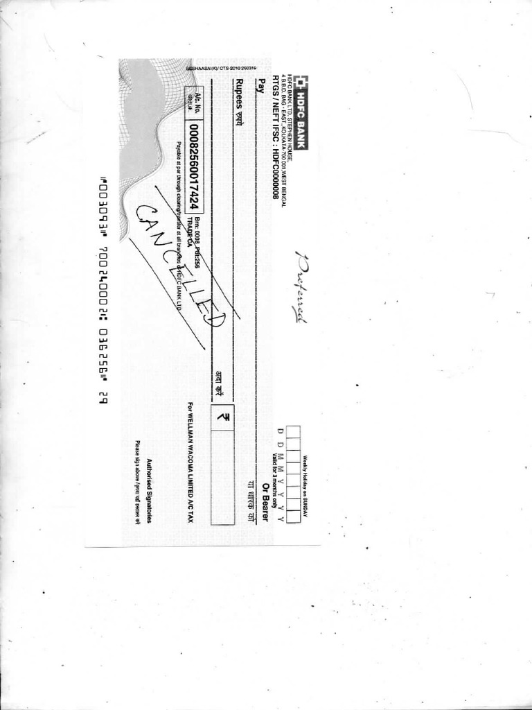 Cancelled Cheque HDFC Account | PDF