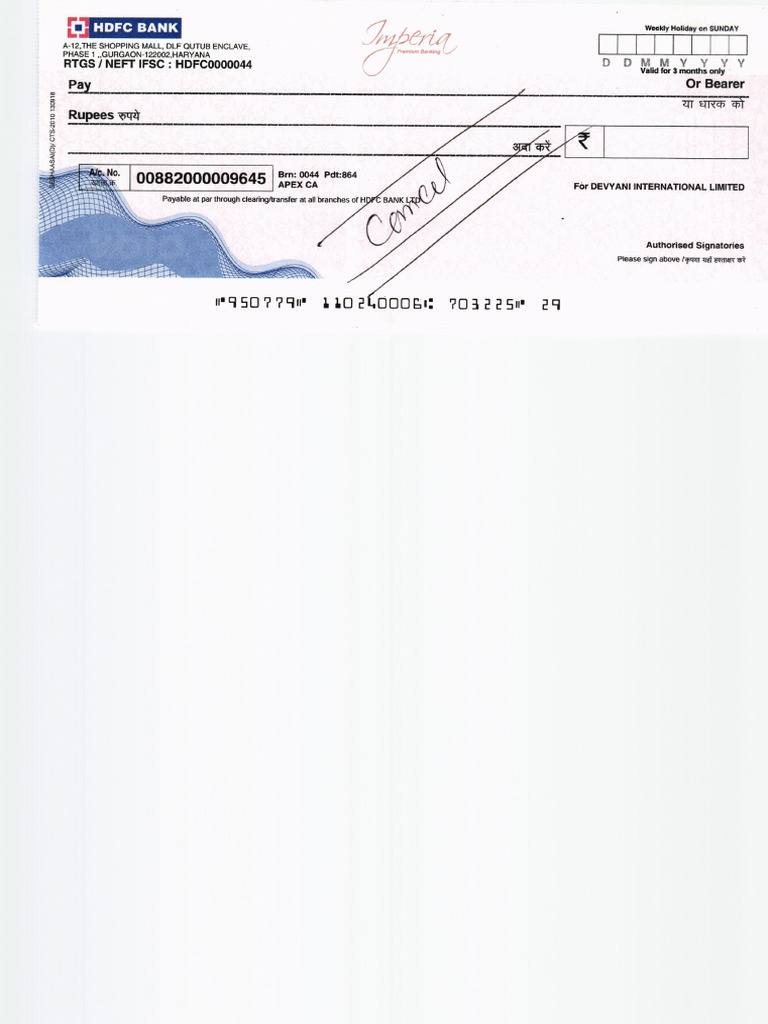 HDFC Bank Cancelled Cheque Sample | PDF