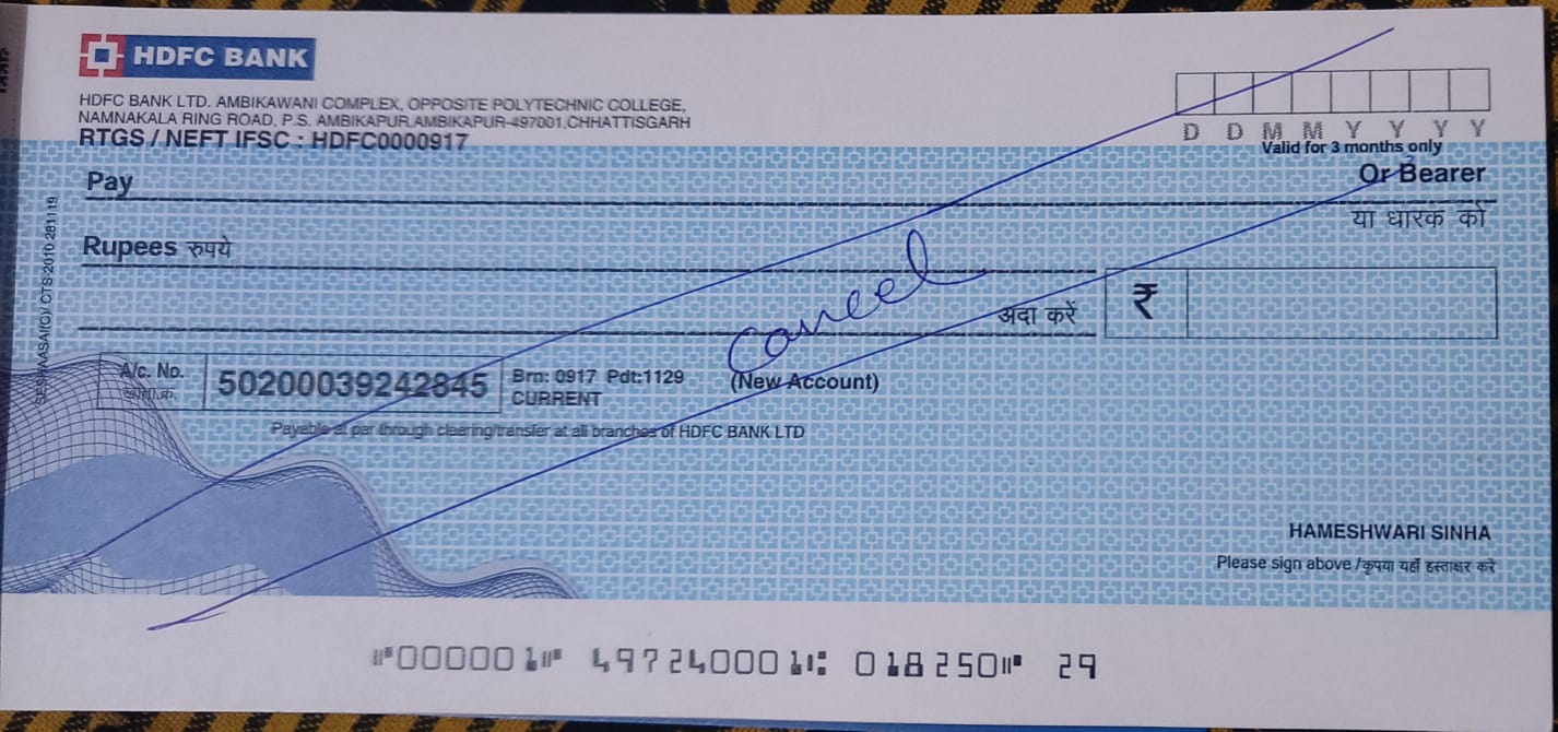 Cancelled Cheque (HDFC) Bharati | PDF