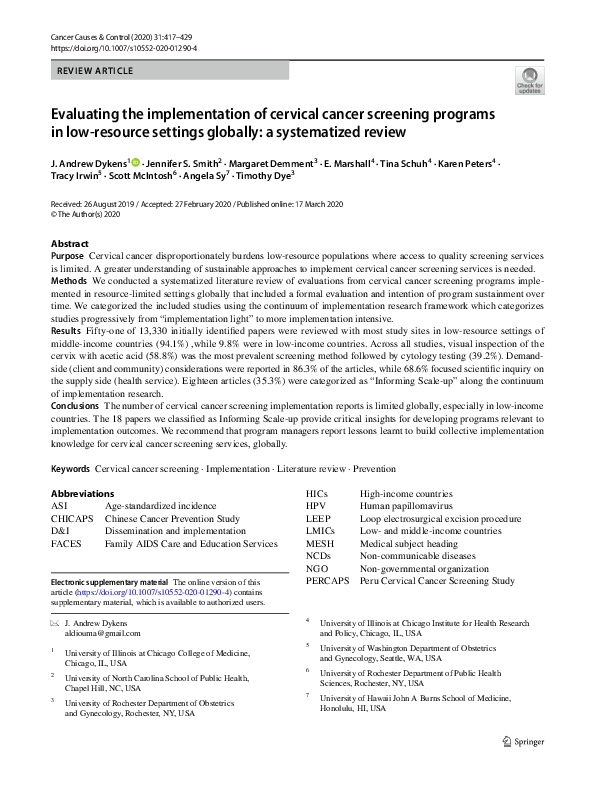 (PDF) Evaluating the implementation of cervical cancer screening ...