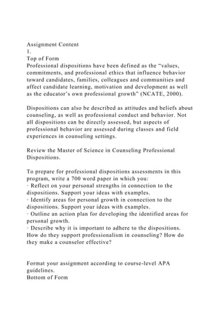 Assignment Content1. Top of FormProfessional dispositions ha.docx