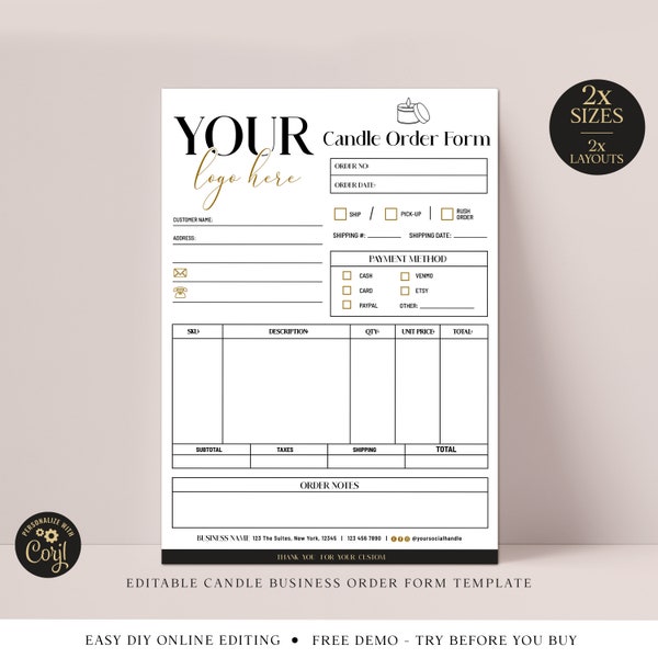 Candle Order Form CANVA Editable Template 2 SIZES Printable - Etsy