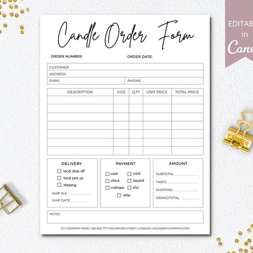 Editable Candle Order Form Canva Template Printable Candle Invoice ...