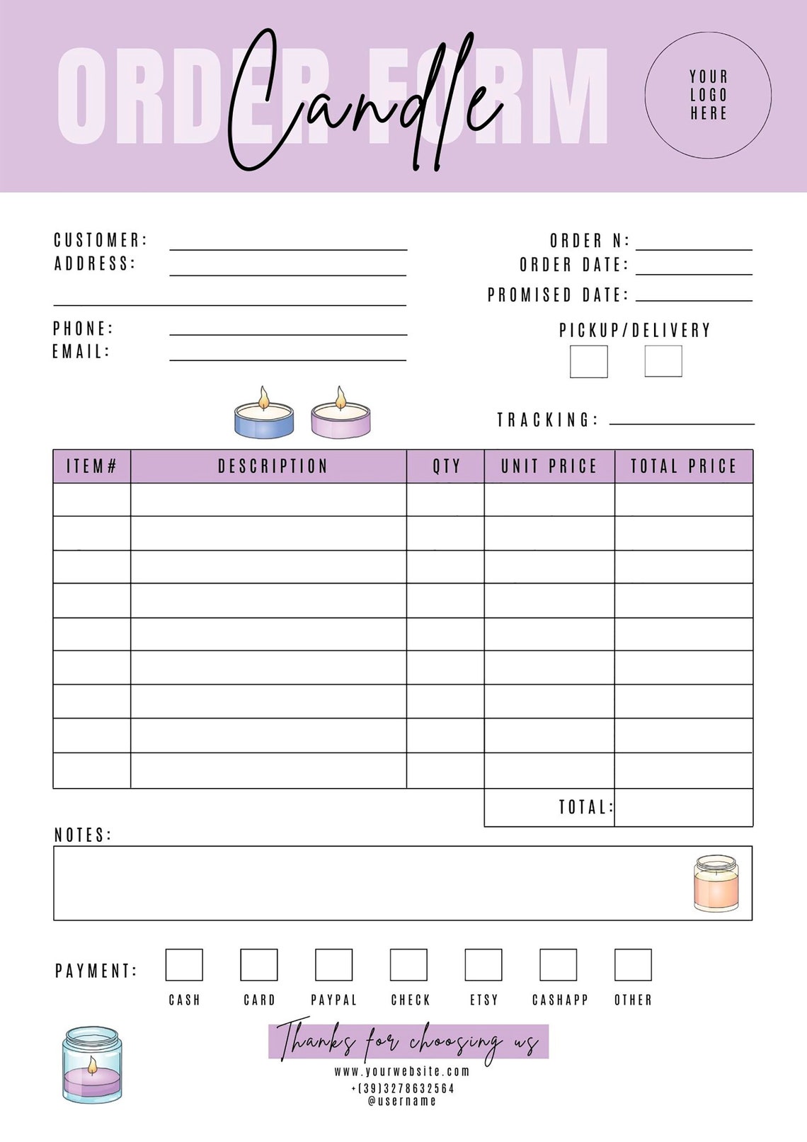 Candle order form template – Artofit