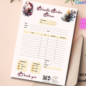 Candle Order Form Template BONUS Orderlog Form Editable Canva Invoice ...