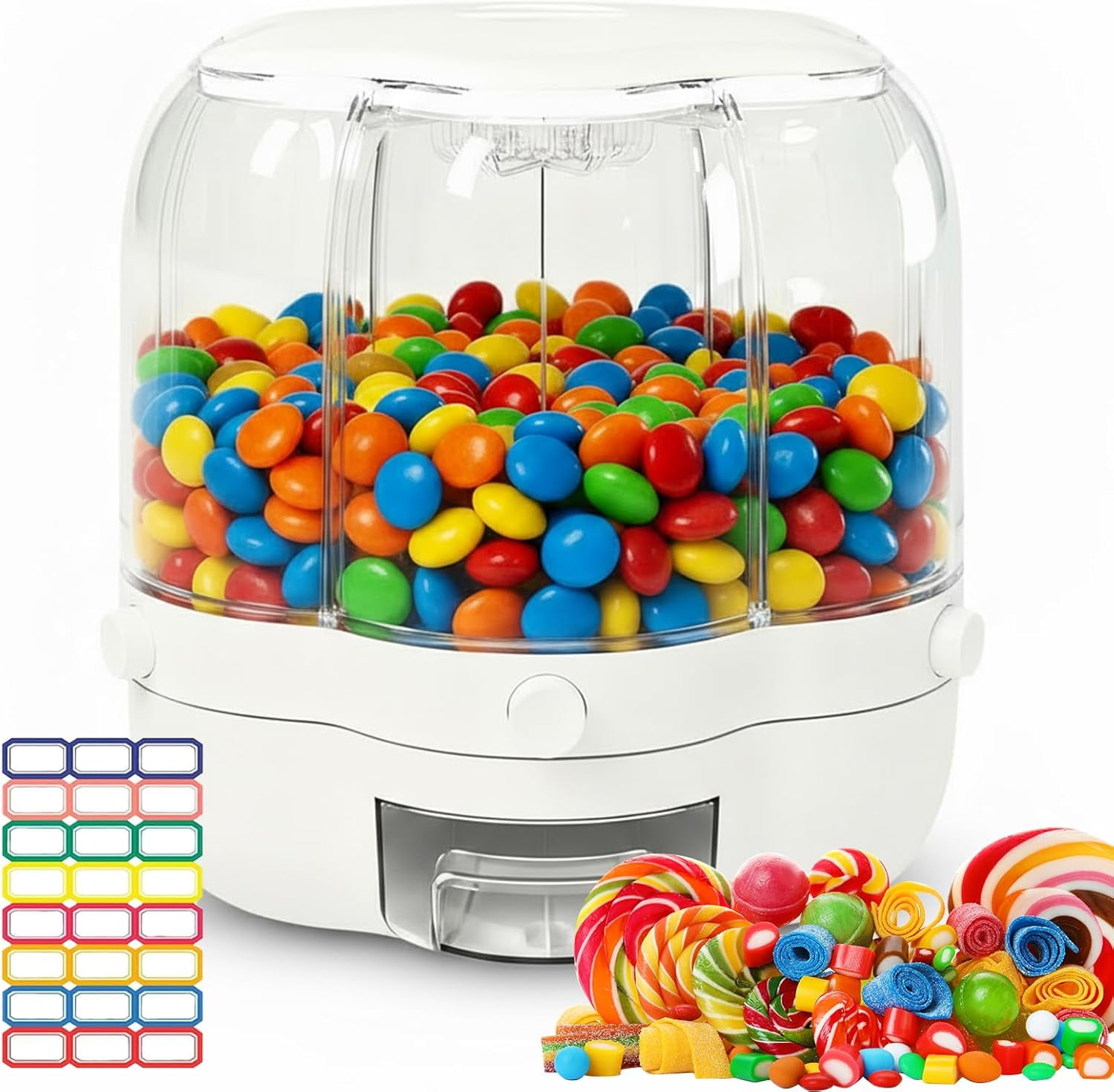 Candy Dispenser 360° Rotating with 6 Compartments, Airtight Food ...