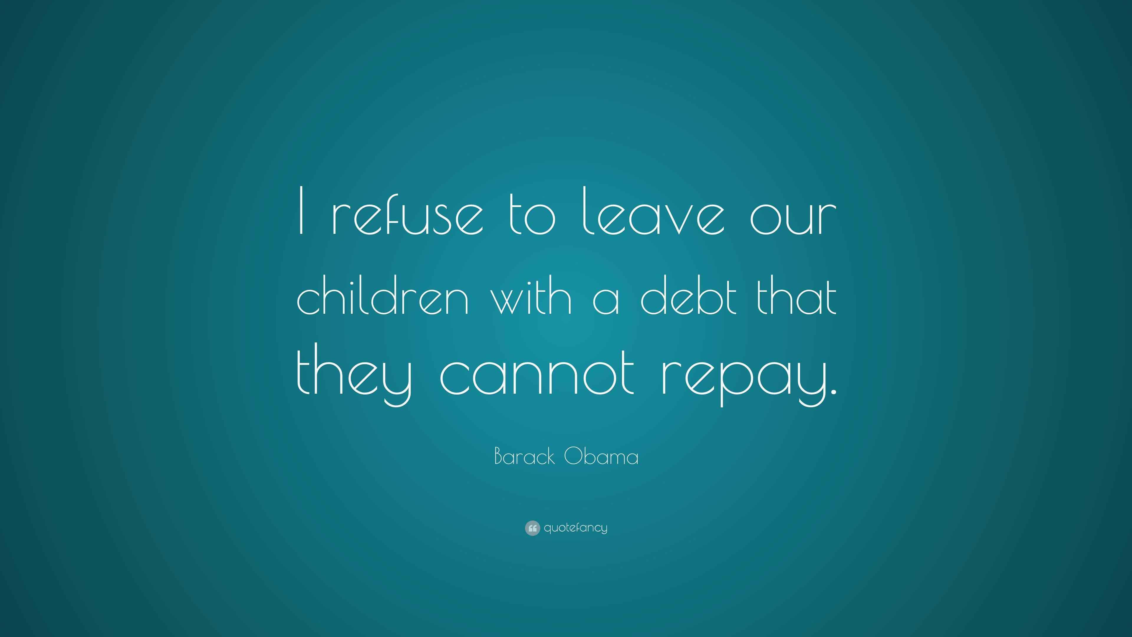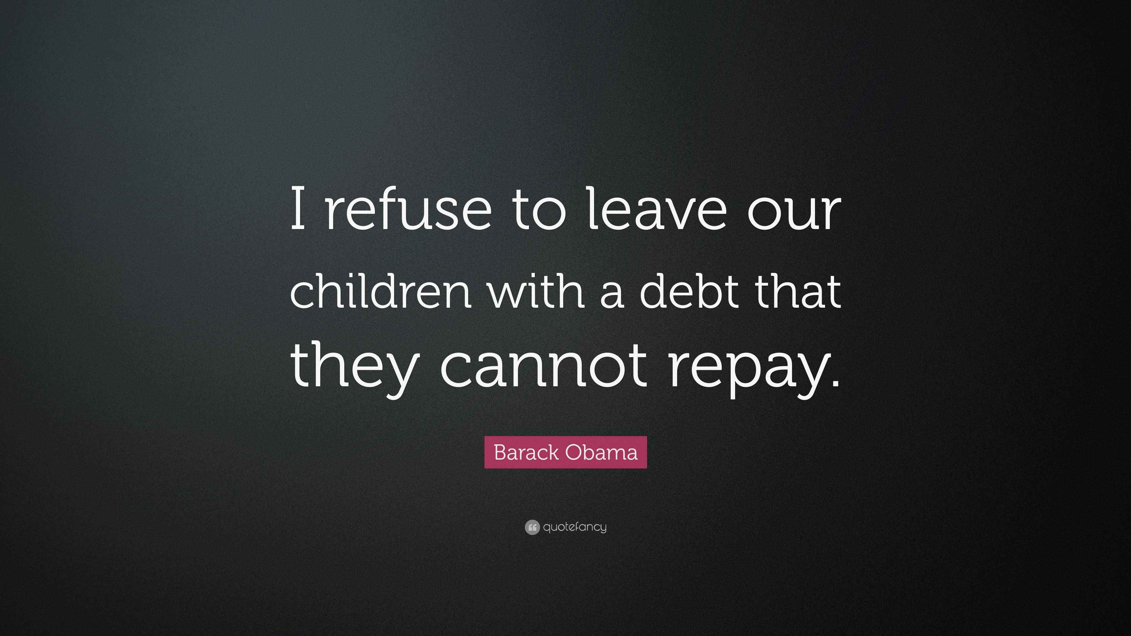 Barack Obama Quote: “I refuse to leave our children with a debt that ...