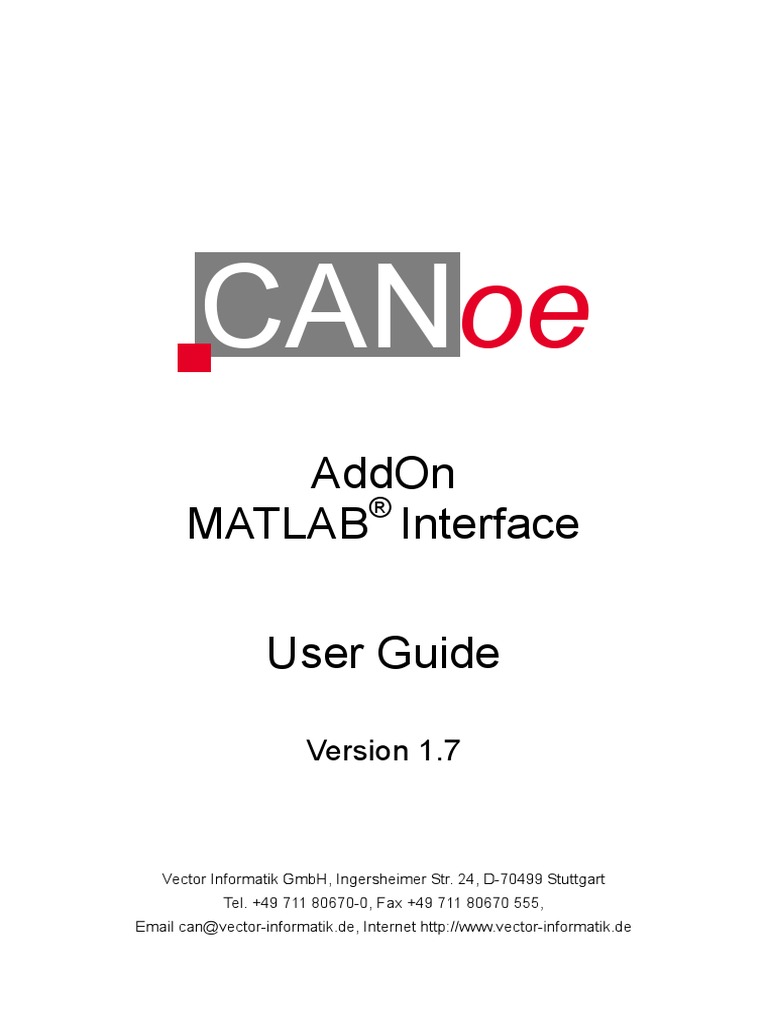 CANoe AddOn MATLAB Interface User Guide | Manualzz