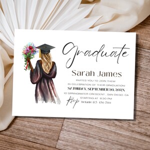 Editable Graduation Party Invitation Template | Modern Cap & Gown ...