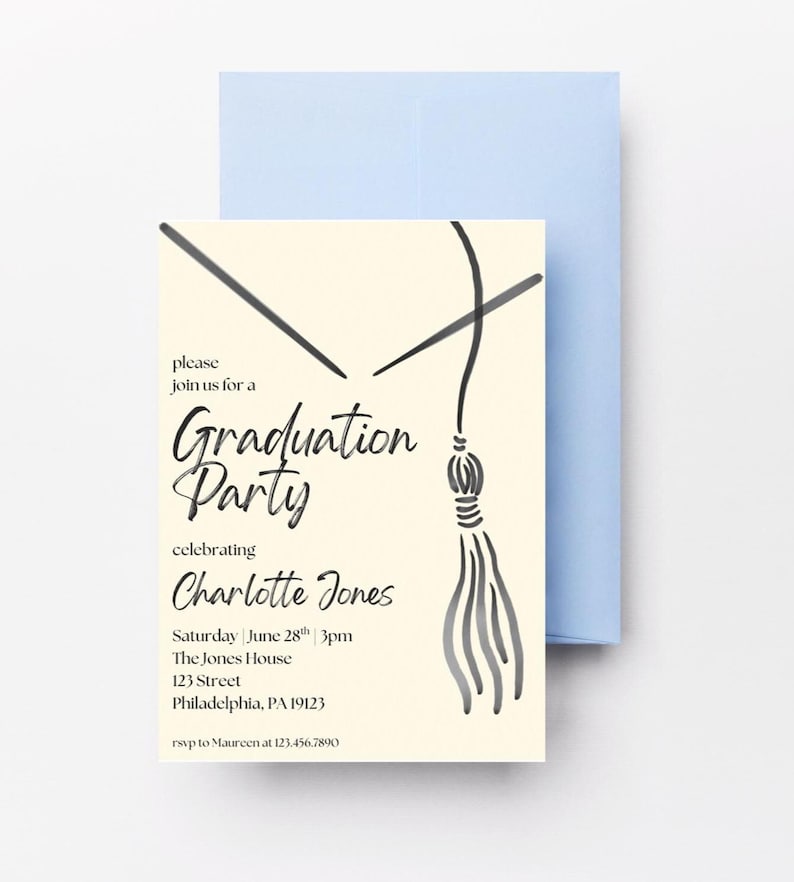 Graduation Cap Party Invite Template, Class of 2025, Minimalist Modern ...