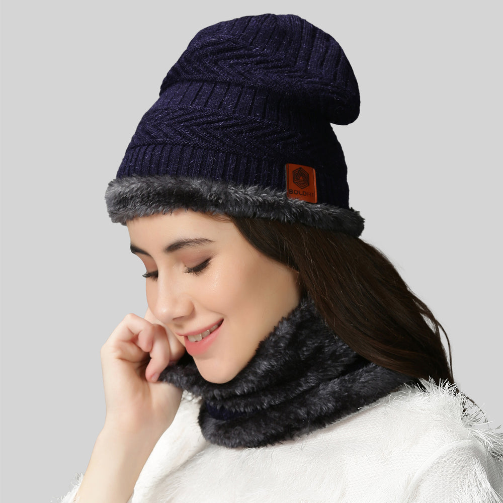 Winter Cap Set with Gloves - Blue Black – Boldfit