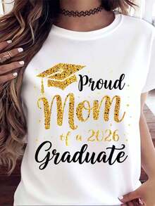 Proud Mom Of A 2026 Graduate T Shirt Gold Graduation Cap And Text ...