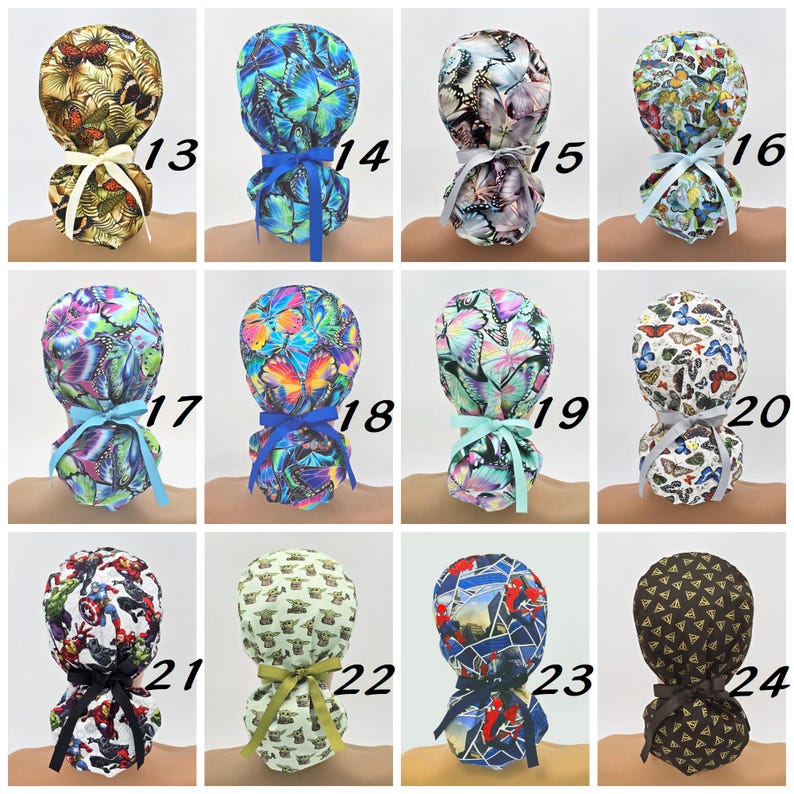 Ponytail Scrub Cap With Satin Lining and Button Option-surgical Scrab ...
