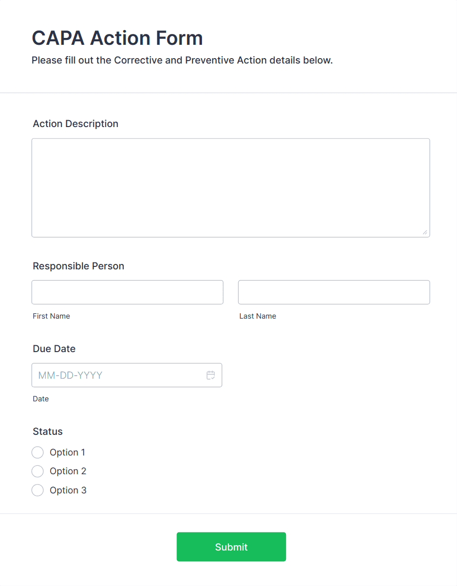 Corrective and Preventive Action (CAPA) Form Template - SimplerQMS