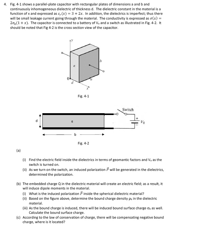Fig. 4-1 shows a parallel-plate capacitor with rectangular plates of ...