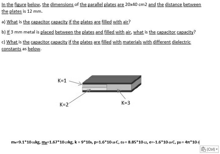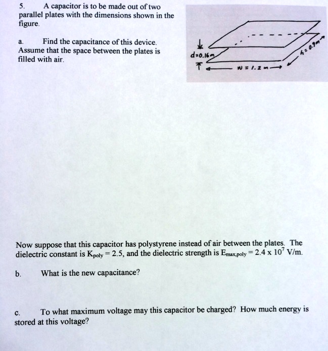 SOLVED: a) The dimensions of a parallel plate capacitor are shown in ...