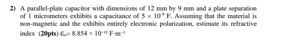 Solved 2) A parallel-plate capacitor with dimensions of 12 | Chegg.com