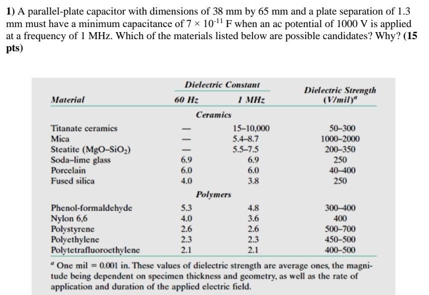 Solved 1) A parallel-plate capacitor with dimensions of 38 | Chegg.com