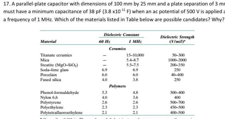 17. A parallel-plate capacitor with dimensions of 100 | Chegg.com