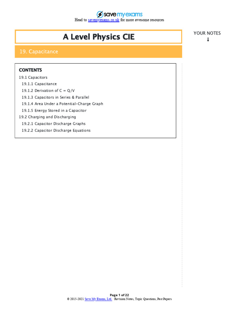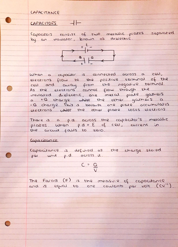 Capacitance A LEVEL Physics notes | Teaching Resources