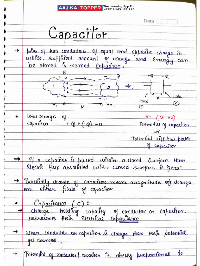SOLUTION: NEET PHYSICS NOTES (Capacitor and its capacitance) - Studypool